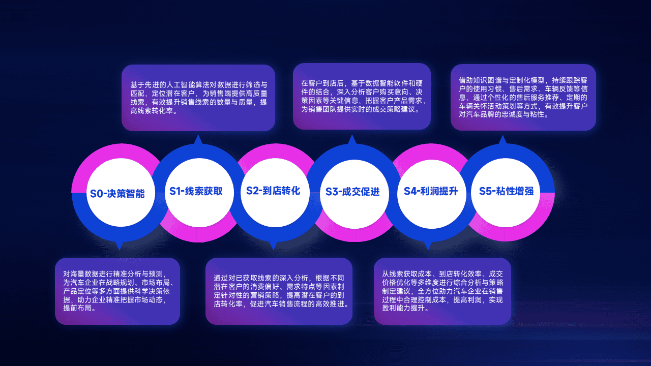 通过拓宽潜在客户来源、、、优化线索分配并提高到店转化率,,,以增强销售效率。。。。同时,,,,利用线索数据不断优化分析模型,,,有效提升转化率,,,扩大营销影响力。。